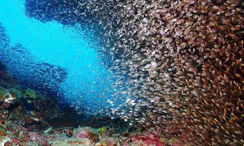 ダイビング2日目! 潮の流れを楽しむドリフトダイビングの味をしめたM子さん。 朝からどこへ行こうか考えながら、風をみて、高台から見える範囲で波の様子を伺います。 地形ポイントばかりでは地形ポイントの良さが引き立たないので、サンゴや砂地のポイント…
